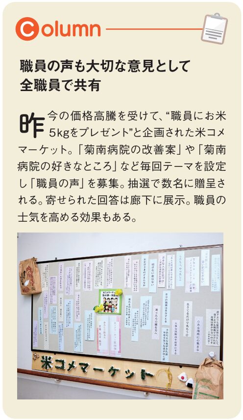 6年在勤した同診療所に後任医師が見つかり、時を同じくしたころ菊南病院の転換期と感じ、誉伶先生は戻る意思を固めた。「この4年間2拠点を行き来して、島では各地区への出張診療の意義を、熊本では訪問診療に関わりながら、住民参加の〝きくなんフェスタ〞を企画運営しました。医療以外での様々な交流の必要性を実感しています」と強調する。